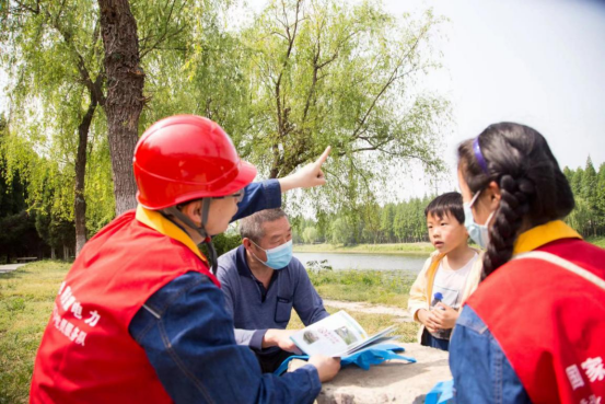 4月23日,市发改委电保中心和国网淮北供电公司安监部、城区供电服务中心人员来到濉河生态公园附近,开展电力设施保护宣传活动。