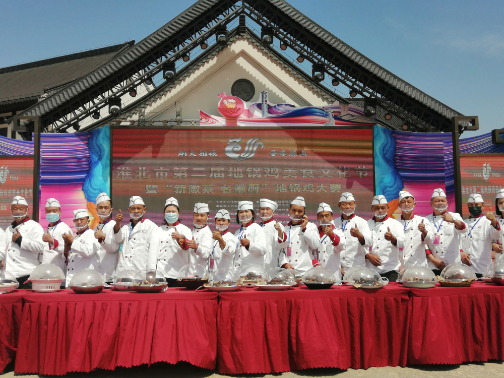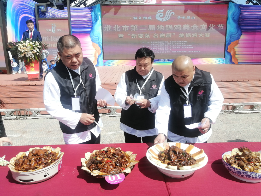 4月29日上午,淮北市第二届地锅鸡美食文化节暨“新徽菜·名徽厨”地锅鸡大赛在烈山区四季榴园景区举办。本次大赛以地锅鸡烹饪为主题,共30家餐饮企业参与角逐。比赛现场人头攒动烟火升腾,各家厨师纷纷亮出拿手绝活,先将猪五花煸炒出油,再下葱姜八角等佐料爆炒出香,随后倒入剁好的鸡块,待至锅开将手工拉扯的面饼迅速贴至锅边,闷三到五分钟即可出锅。一盘盘香气扑鼻的地锅鸡,以鲜香肥美的跑地鸡为主、以薄脆入味的面饼为辅、以修剪下的石榴枝为柴、以甘甜清冽的山泉水为汤,让人垂涎三尺。参赛作品经专家评委、大众评委等综合打分,最终评选出最佳烹饪奖3名、最佳门店奖3名、最受游客欢迎奖4名。