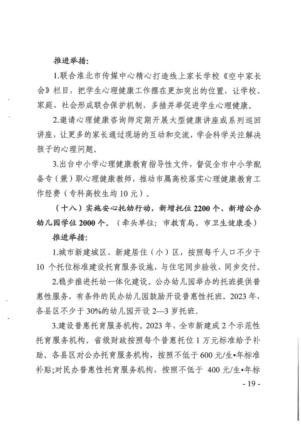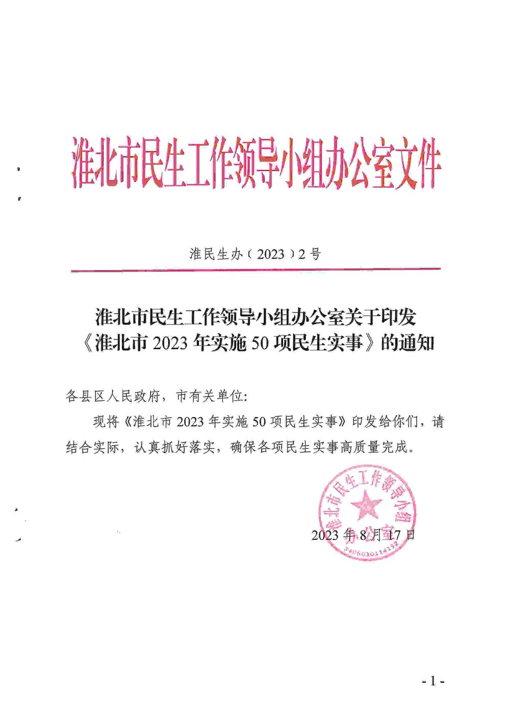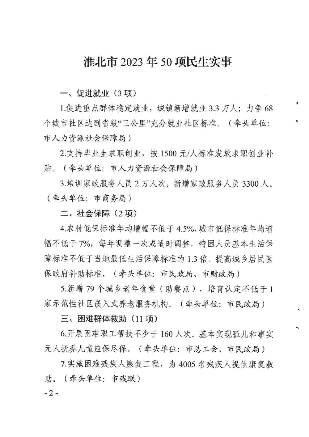 淮北市民生工作领导小组办公室关于印发《淮北市2023年实施50项民生实事》的通知