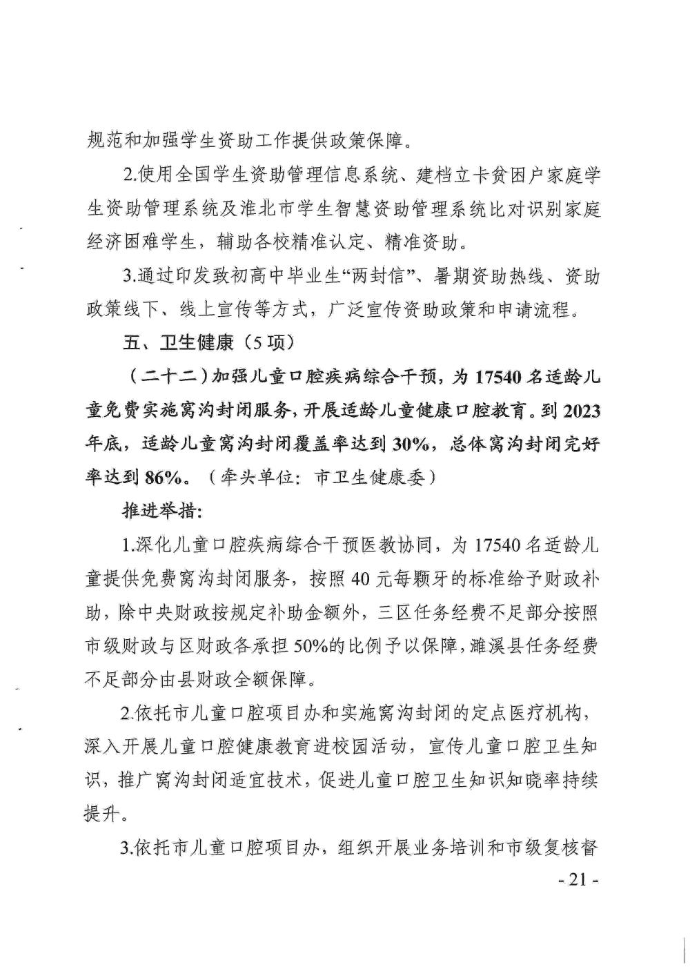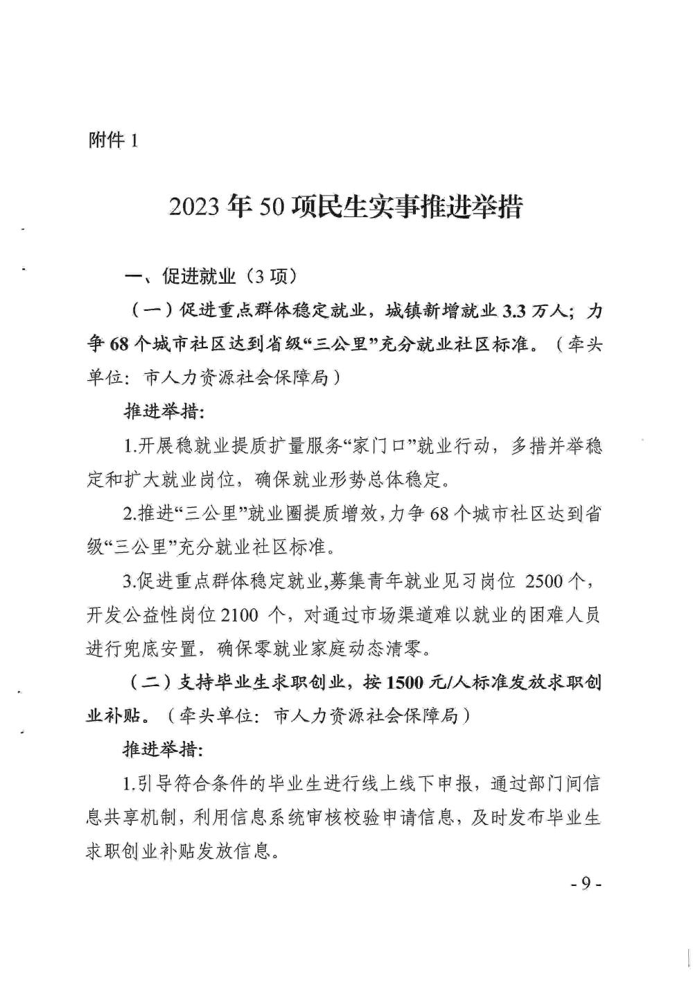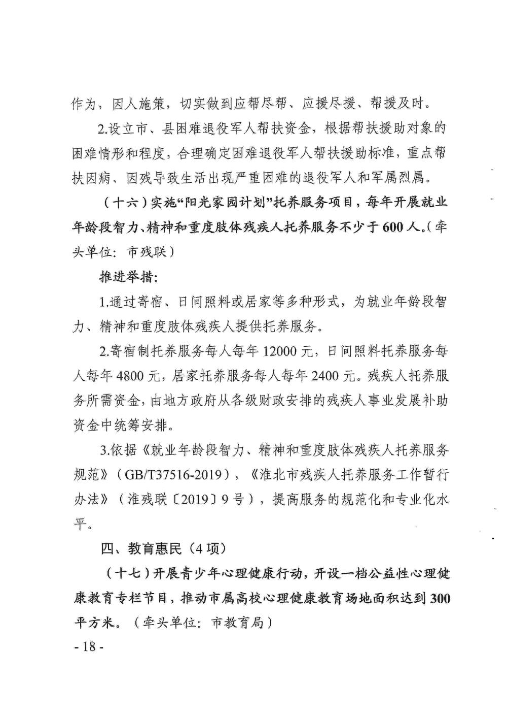 淮北市民生工作领导小组办公室关于印发《淮北市2023年实施50项民生实事》的通知