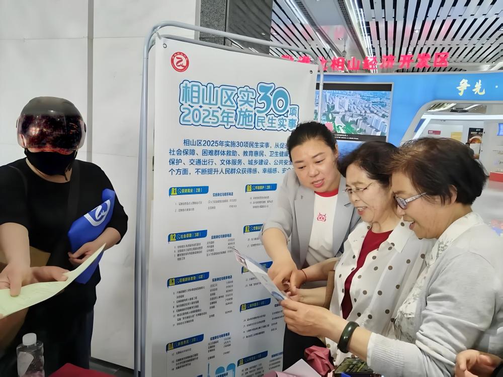 为深入宣传2025年30项民生实事政策内容和成效,让广大群众持续感受到惠民实事带来的“热度”和“温度”,切实提高群众的知晓度、参与度、满意度。4月18日下午,相山区发改委联合十五家成员单位在第十二届淮北食品工业博览会会场,开展2025年30项民生实事政策集中宣传活动。