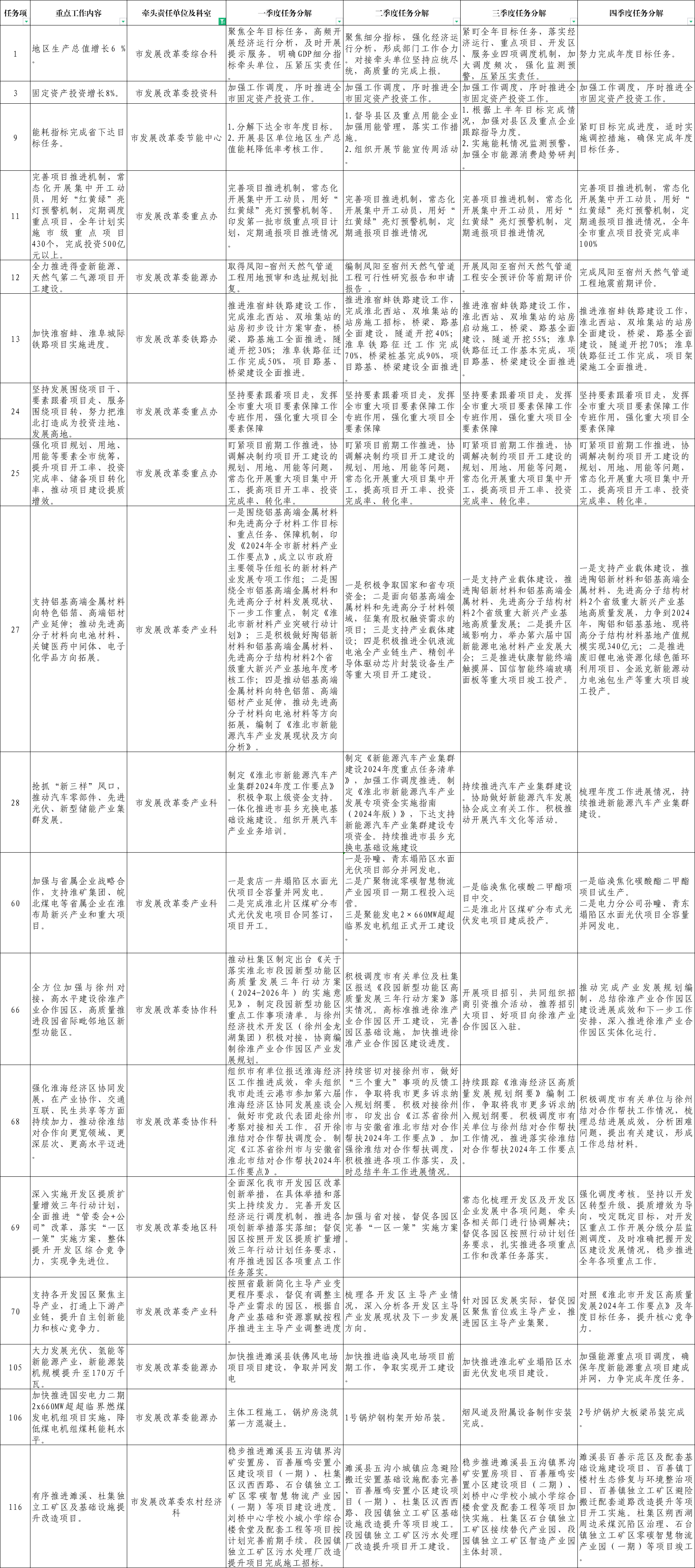 淮北市发展改革委(粮食和物资储备局)2024年重点工作任务责任分解表