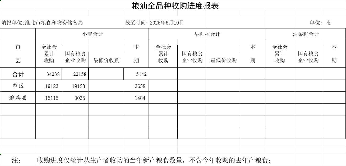 【民生回应-夏粮收购】2025年6月10日粮油全品种收购进度报表(夏粮)