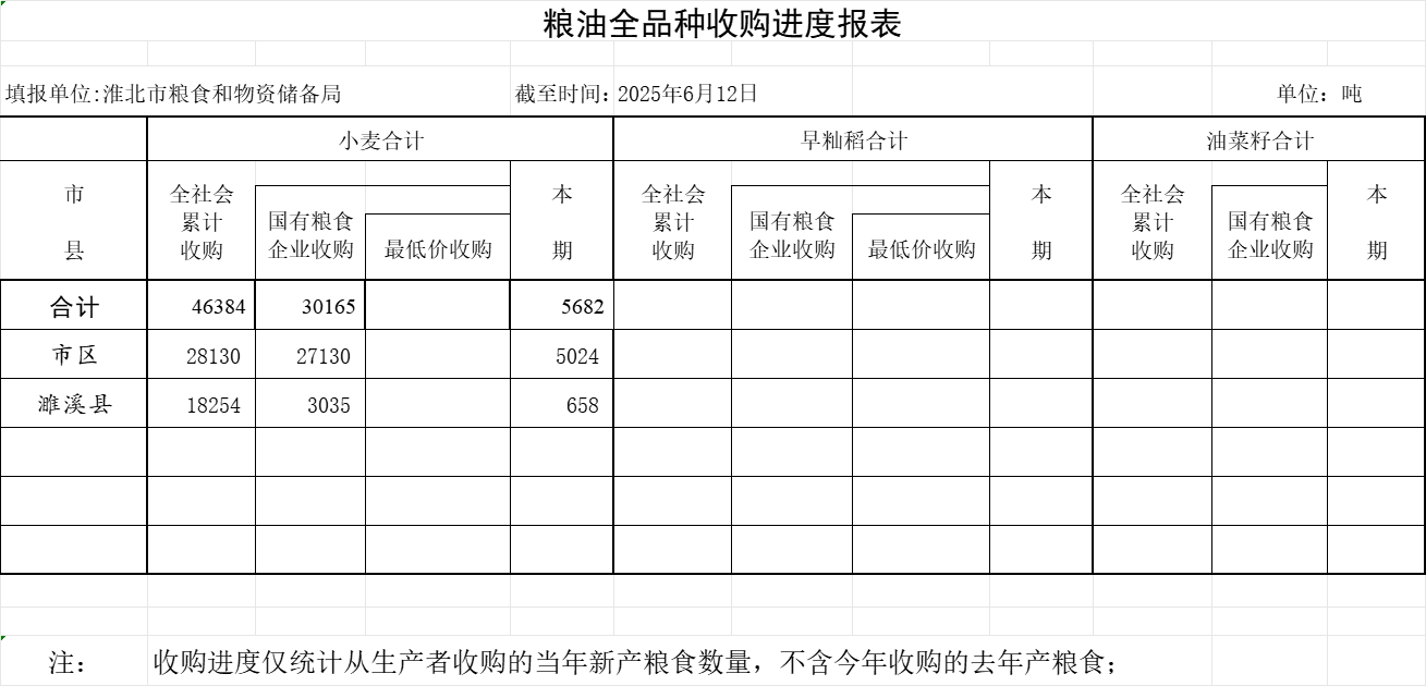 【民生回应-夏粮收购】2025年6月12日粮油全品种收购进度报表(夏粮)